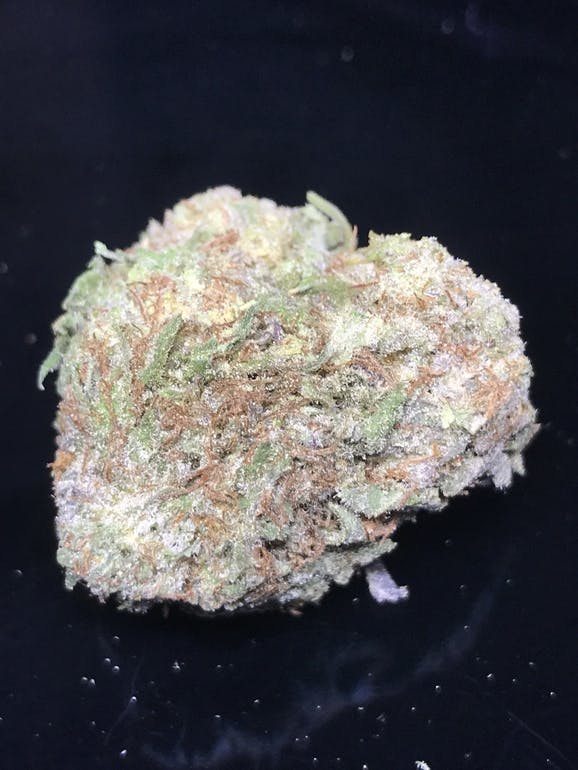 God’s Green Crack is a super rare slightly indica dominant hybrid strain (55% indica/45% sativa) created through crossing the infamous God’s Gift X Green Crack strains. This powerhouse packs a super heavy high that’s perfect for relaxing days where you want a little energy to get up and moving but still want to kick back and relax. You’ll feel a light build at the onset of the high, infusing you with a tingly effect in the back of your head before spreading through the rest of your mind with a sense of focused energy. Soon after, your physical form will succumb to the same tingly feelings, leaving you totally relaxed in both mind and body. Thanks to these effects and its high 22-25% average THC level, God’s Green Crack is often chosen to treat conditions such as chronic fatigue, depression, ADD or ADHD, migraines, and nausea or appetite loss. This bud has oversized fluffy forest green spade-shaped nugs with purple leaves, bright orange hairs, and a coating of tiny amber crystal trichomes. As you break apart each tiny little nugget, aromas of tangy fruits and rich tropical mango are released. The aroma is very similar, although with a spicy earthy effect as the nugs are burned.